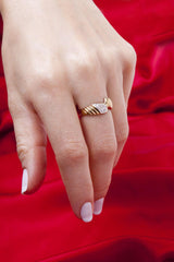 Lieben Sie Deko-Design genauso wie wir? Und erinnert Sie das nicht an diese wunderschönen fließenden Kurven? Dieser Goldring hat eine süße Ausstrahlung und ein Retro-Feeling. Ein perfektes Geschenk für eine Frau, die die romantischen Gefühle vergangener Zeiten genießt.