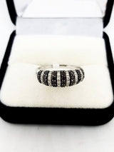 Halbkuppelring aus Weißgold mit schwarzen und weißen Diamanten