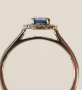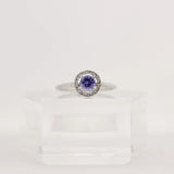 Halo-Ring aus Weißgold mit Tansanit und Diamant
