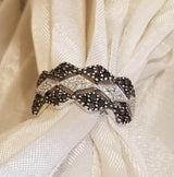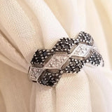 Zickzack-Ring mit schwarzen und weißen Diamanten
