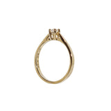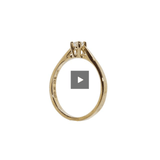 Der 4-Krappen-Solitärdiamantring aus 9 Karat Gelbgold hat einen Diamanten von 0,12 Karat im Herzen des Schmuckstücks.