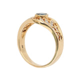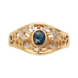 Filigranring aus 9-karätigem Gelbgold mit blauem Saphir und Diamant