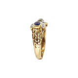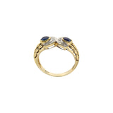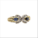 Saphirring aus 9-karätigem Gelbgold und Formation aus zwei halbkreisförmigen Diamanten .