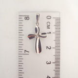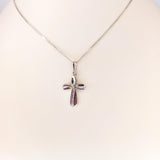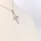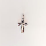Kreuz aus 9-karätigem Weißgold mit einem kleinen Diamanten von 0,01 ct in der Mitte. Die 4 Teile des Kreuzes haben eine kleine Welle, um dem Ganzen ein wenig Detail zu verleihen, und es hat abgerundete Kanten.