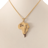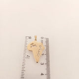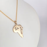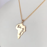 Colgante Mapa de África Cazando una Springbok Este Colgante Mapa de África está elaborado artesanalmente en Oro de 9kt y tiene una gacela y cazadores que se perfilan cazando la gacela.