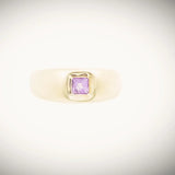 Anillo de Oro Amarillo de 9 kt con Amatista y acabado mate. ¡Este estilo hace de este un anillo con un look contemporáneo y te hará sentir como una mujer de hoy!