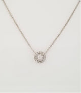 ¡Este colgante de oro blanco de 9 quilates, engastado con diamantes con un total de 0,14 quilates, es un colgante pequeño y encantador que te hará sentir deliciosamente alegre! Los diamantes pequeños están engastados de manera que crean la ilusión de un diamante grande. Shhh , será nuestro pequeño secreto...