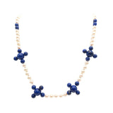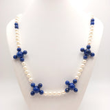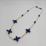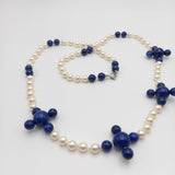 Este collar es una cuenta de vidrio con un revestimiento de perlas y cuentas de lapislázuli. El collar mide 55 cm de largo y las cuentas miden 6,5 mm de ancho.