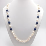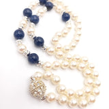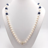 Collar de perlas y sodalita con cierre de bola brillante