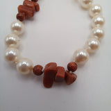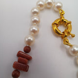 Cuentas de cristal perla y cuentas de arenisca, con pulsera con cierre de anilla de oro.