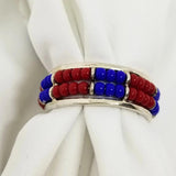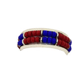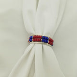 Anillo de cuentas africanas de plata en rojo y azul. La vibración de las cuentas azules y rojas es representativa de la rica diversidad e historia de un continente que creía conocer. Según la cultura africana, las cuentas simbolizan la riqueza y la fertilidad, lo que lo convierte en el regalo ideal para llevarse a casa después de sus viajes. Este diseño es en Talla P y no se puede ajustar. ¡Lo siento mucho!