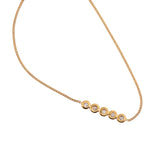 La pulsera es de oro amarillo de 9 quilates y presenta cinco diamantes. Cada uno está colocado en un tubo que pesa en total 0,10 quilates.