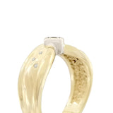 Este anillo de oro amarillo de 9 quilates con circonitas cúbicas es una combinación perfecta de formas y ofrece un centro geométrico, suavizado por las formas curvas que lo rodean. ¡No demasiado llamativo, pero ciertamente brillante! Úsalo cuando tengas ganas de mezclar negocios y placer ;}.
