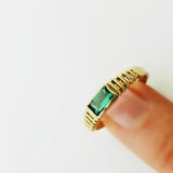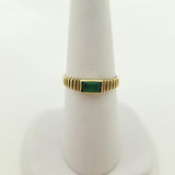 Anillo de Oro Amarillo Acanalado con Piedra de Cristal Verde