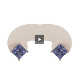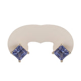 Pendientes de plata con piedra azul talla princesa. Si busca una imitación de tanzanita económica, este par de aretes son la elección perfecta.