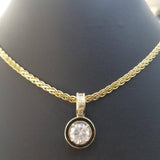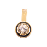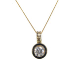 Este versátil colgante de oro amarillo de 9 quilates es único en su diseño. La circonita cúbica está rodeada por un círculo de esmalte negro que le da a este colgante su individualismo. Se puede usar en cualquier collar existente para darle un aspecto nuevo y fresco. El colgante es el punto focal de cualquier diseño y te hará sentir como una reina.
