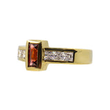 Anillo de oro amarillo con granates talla baguette y circonitas cúbicas engastadas