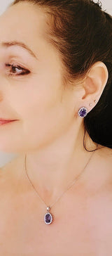 Pendientes con halo de tanzanita y diamantes en oro blanco de 18 kt