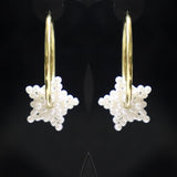 Estos aros de oro amarillo de 18 quilates llevan el precioso racimo de perlas en forma de diamante. Este par de aretes inusuales de inspiración bohemia combinan perlas con aros, ¡algo que no se ve a menudo! Son aretes para cada ocasión, así que siéntete siempre lo mejor posible y camina con un poco más de estilo. La diversión y el beneficio extra es que las estrellas de perlas se pueden quitar y los aros se pueden usar tal como están.