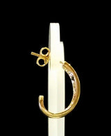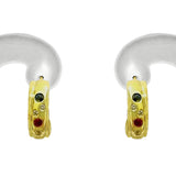 ¡Estos aretes de medio aro de oro amarillo de 9 quilates tienen un aire de descaro supremo! Siente la alegría de sus piedras de colores en circonita cúbica roja, negra y blanca mientras te mantienes elegante y chic .
