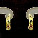 Pendientes Media Aro En Oro Amarillo De 9 Kt Con Piedras De Colores
