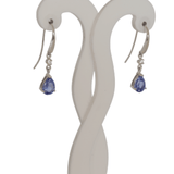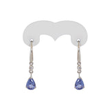 Los aretes de plata presentan un gancho extralargo en una pequeña piedra redonda de circonita cúbica transparente y, además, conducen a una gota de piedra azul en forma de pera que se asemeja a una gota de agua de una fuente. Este par de pendientes son una fantasía de tanzanita asequible.
