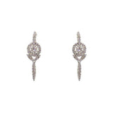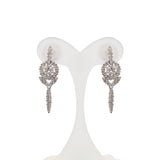Pendientes colgantes de oro blanco de 18 quilates con diamantes. Los diamantes centrados con garras son de 0,19 quilates cada uno con un total de 0,38 quilates y los 50 pequeños diamantes circundantes tienen un total de 0,90 quilates.