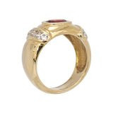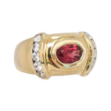 Anillo de Oro Amarillo con Granate Ovalado y Circonitas