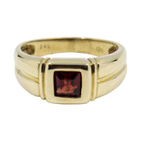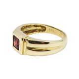 Esta piedra natal de enero con su diseño retro, chic y unisex es audaz y distintiva. El granate cuadrado envuelto por la calidez del oro amarillo seguramente hará una declaración y complementará cualquier ocasión. Este anillo significa fuerza y confianza.