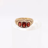 El granate no es sólo la piedra de nacimiento de enero, sino que también puede usarse para completar o complementar cualquier ocasión. Además, las piedras recuerdan a un vino tinto con mucho cuerpo y te harán sentir sensual y elegante. Qué magnífica representación de este anillo único de aspecto antiguo. Tenga en cuenta que el anillo de diamantes y granate de tres piedras está detallado con filigrana, lo que compensa las piedras de color rojo intenso a la perfección.