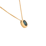 Este colgante ovalado de topacio azul se ha VENDIDO y puede pedir uno similar en cualquier metal (9, 14 o 18 quilates) en oro blanco, oro amarillo o platino.