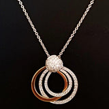 ¡Mezclando en los círculos correctos! Este impresionante y elegante colgante geométrico de dos tonos está simplemente cubierto de diamantes, pero sigue siendo una pieza perfecta para ocasiones más informales.