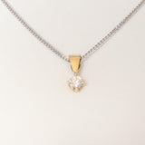 Colgante de diamantes en oro amarillo de 18 quilates. Este lindo colgante está elaborado expertamente en oro amarillo con un diamante con un total de 0,17 ct. El colgante de diamantes de cuatro garras es una pieza de joyería clásica y elegante que agrega sofisticación para mimarse a usted o a un ser querido.