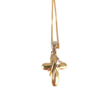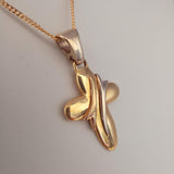 Colgante de cruz de Oro de 18kt con vetas o líneas elevadas que descienden desde la parte superior derecha de la cruz hasta la parte inferior. Estas rayas son de dos colores diferentes: oro blanco y amarillo, lo que lo hace aún más interesante. A menudo es agradable tener una joya de dos tonos. De hecho, puedes utilizar en este colgante una cadena de oro amarillo o blanco y ambas combinarán.