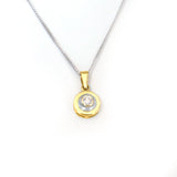 Colgante Redondo Combinado de Oro Blanco y Amarillo. Elegante y con estilo, este colgante de diamantes amarillos y blancos está engastado en oro de 18 quilates y tiene un diamante redondo de 0,15 quilates. Un colgante de diamantes es una pieza de joyería clásica que será apreciada toda la vida.