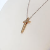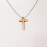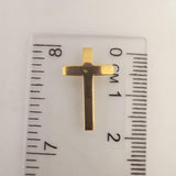 Cruz de Oro Amarillo partida en dos. Este es un colgante de cruz pequeño, liso y sencillo, dividido en dos, hecho a mano a medida en oro amarillo de 9 quilates. El tamaño de la cruz es de 2 cm de largo.