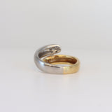 Este impresionante anillo de platino de dos colores Cross Over tiene diamantes con un total de 0,21 quilates.