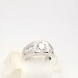 Anillo de platino para hombre con un diamante central de 0,90 quilates y diamantes laterales con 7 baguettes en cada lado (14 en total) con un total de 0,48 quilates.