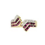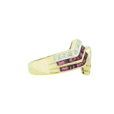Anillo en oro amarillo con rubíes y diamantes en zig-zag
