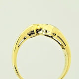Precioso anillo vintage en zig-zag de diamantes y rubíes de oro amarillo de 18 quilates, engastado con diamantes redondos con un total de 0,06 quilates y rubíes de talla princesa con un total de 1,20 quilates. Los diamantes permiten destellos mientras que el brillo del oro acentúa el color rojo sangre de las piedras natales de julio, absolutamente impresionante, ¡te encantará!
