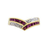 Anillo Wishbone de oro amarillo con rubíes y diamantes