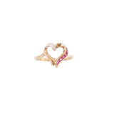 ¡Tenemos nuestros corazones puestos en este anillo en forma de corazón de diamantes y rubíes de oro amarillo ! ¡Usarlo significa sentir el dulce toque del romance sin importar dónde estés! Es un regalo perfecto.