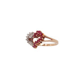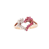 El oro amarillo intenso de este anillo en forma de corazón luce diamantes y rubíes, que desprenden un magnífico despliegue de luz. Este anillo es la solución perfecta para el regalo del día de San Valentín.
