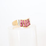 Anillo abanico de oro amarillo con rubíes y diamantes