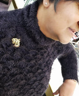 Este broche es feroz, pero domesticarás al tigre y lo harás ronronear contra tu pecho. Una magnífica pieza realizada en oro amarillo con ónix, rubíes y diamantes; Tiene una fianza, por lo que también se puede usar como colgante. Agregará brillo a tu atuendo y a tus ojos.
