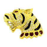 Un broche de tigre con rubíes por un total de 0,92 quilates y diamantes por un total de 0,96 quilates. Las dimensiones son 27 mm o 1,06 pulgadas desde la cabeza hasta el cuello y 25 mm o 1 pulgada desde la boca hasta la parte posterior del cuello.