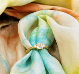 El anillo viene en talla P, pero se puede ajustar para adaptarse perfectamente a su dedo para lograr la máxima comodidad y belleza. Ya sea que esté proponiendo matrimonio o celebrando un hito especial, el anillo de compromiso de trilogía de diamantes de talla cojín en oro amarillo seguramente causará una impresión duradera y será atesorado en los años venideros.