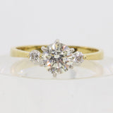 Anillo de compromiso de diamantes con trilogía de oro amarillo