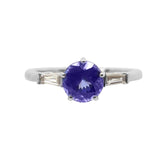 White Gold Six claw Tanzanite and Diamond Baguettes Ring
