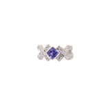 White Gold Princess Tanzanite and Pave Diamond Criss-Cross Split Band Ring